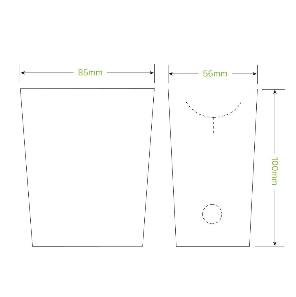 Paper chip cups are available in three different sizes and are made with FSC® certified paper and coated with Ingeo™ – a bioplastic made from plants not oil. Our chip cups are certified commercially compostable.